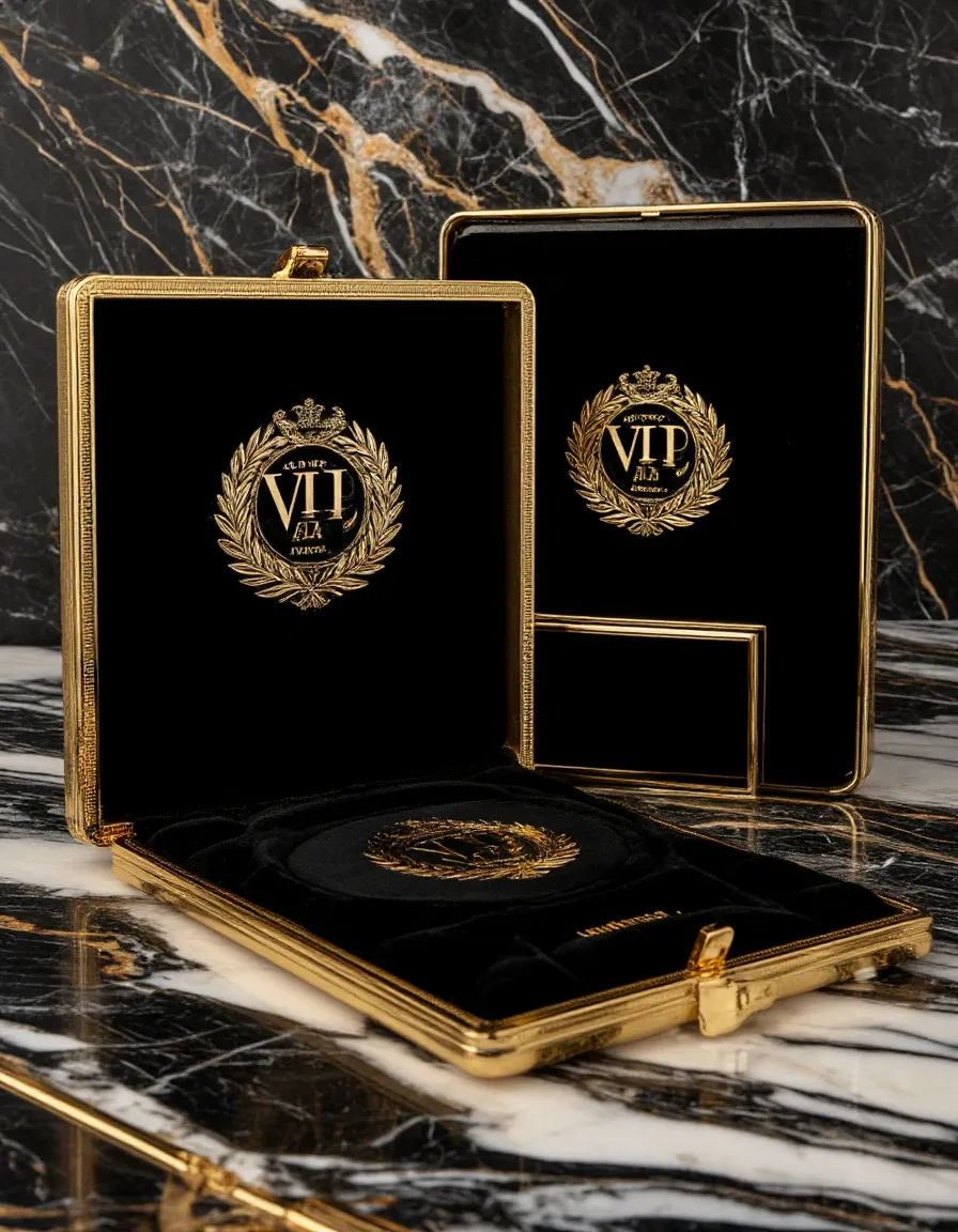 Эксклюзивные аксессуары премиум-класса в элегантной упаковке. Подчеркивает значимость партнера.